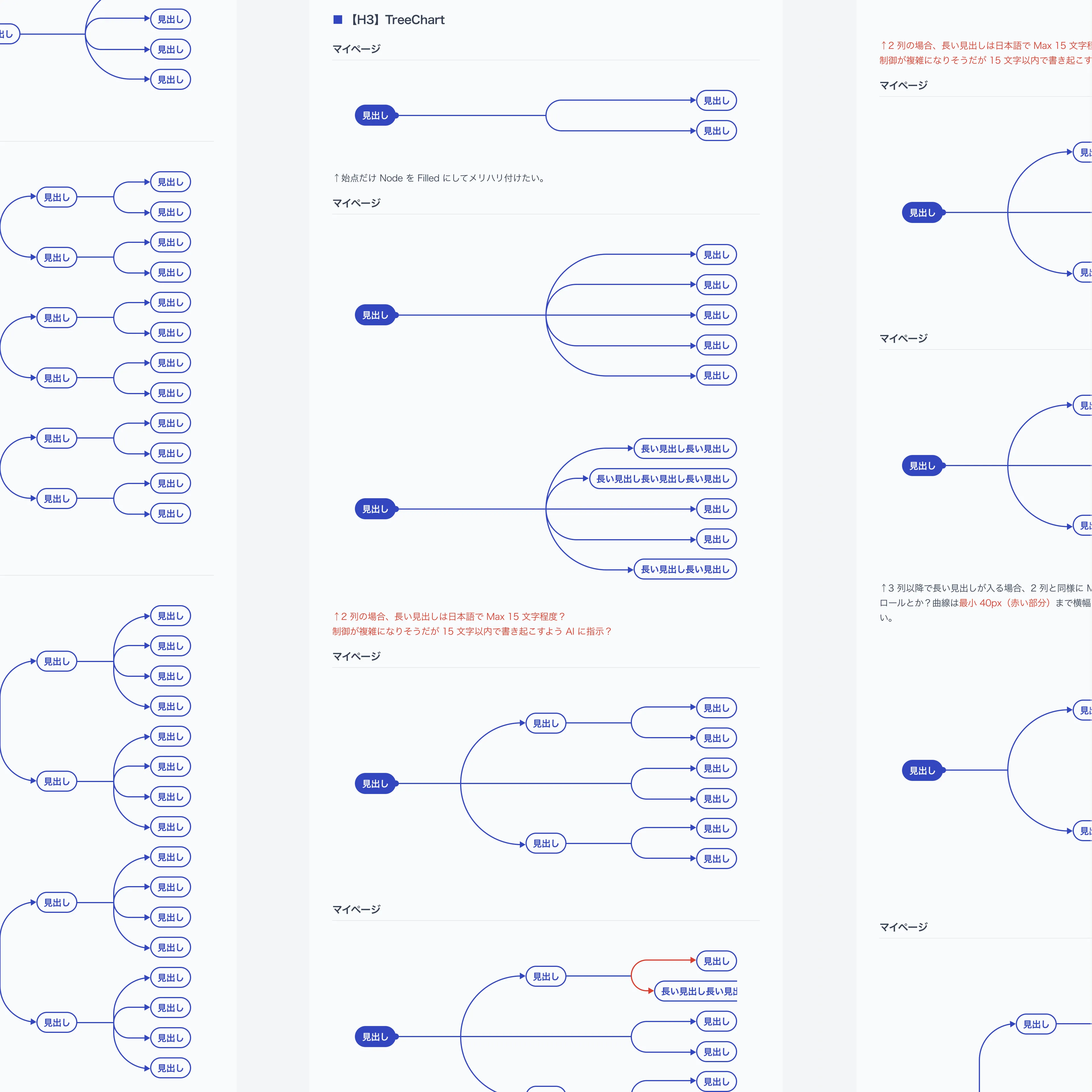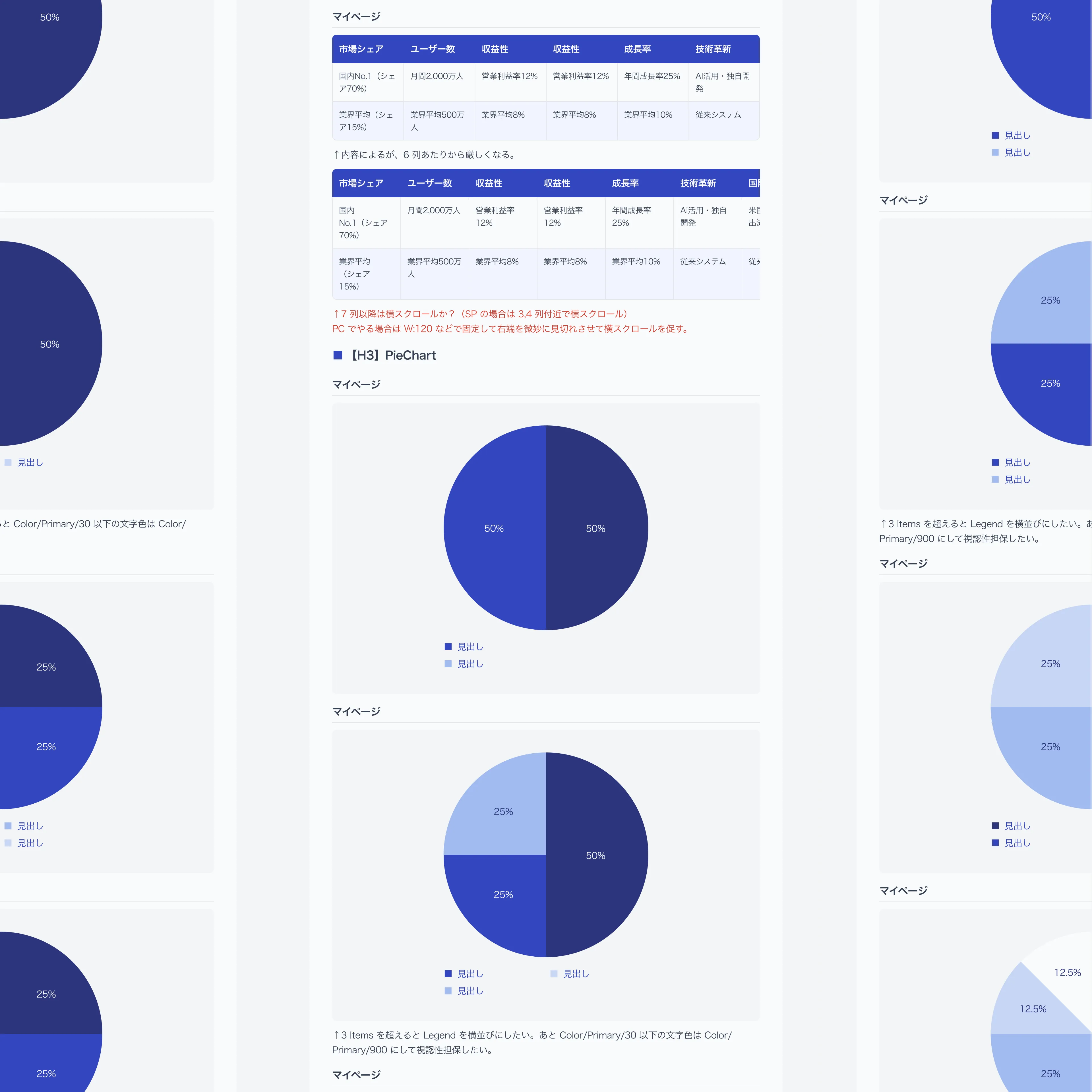 UI設計では、AIが生成する多様なデータを「すぐに理解できる形」で届けることを重視。テーブル・円グラフ・ツリーチャートなど、情報の性質に応じた図版コンポーネントを設計しました。入力フォームから結果表示、AIチャット、検索履歴まで、一貫した体験設計を行っています。